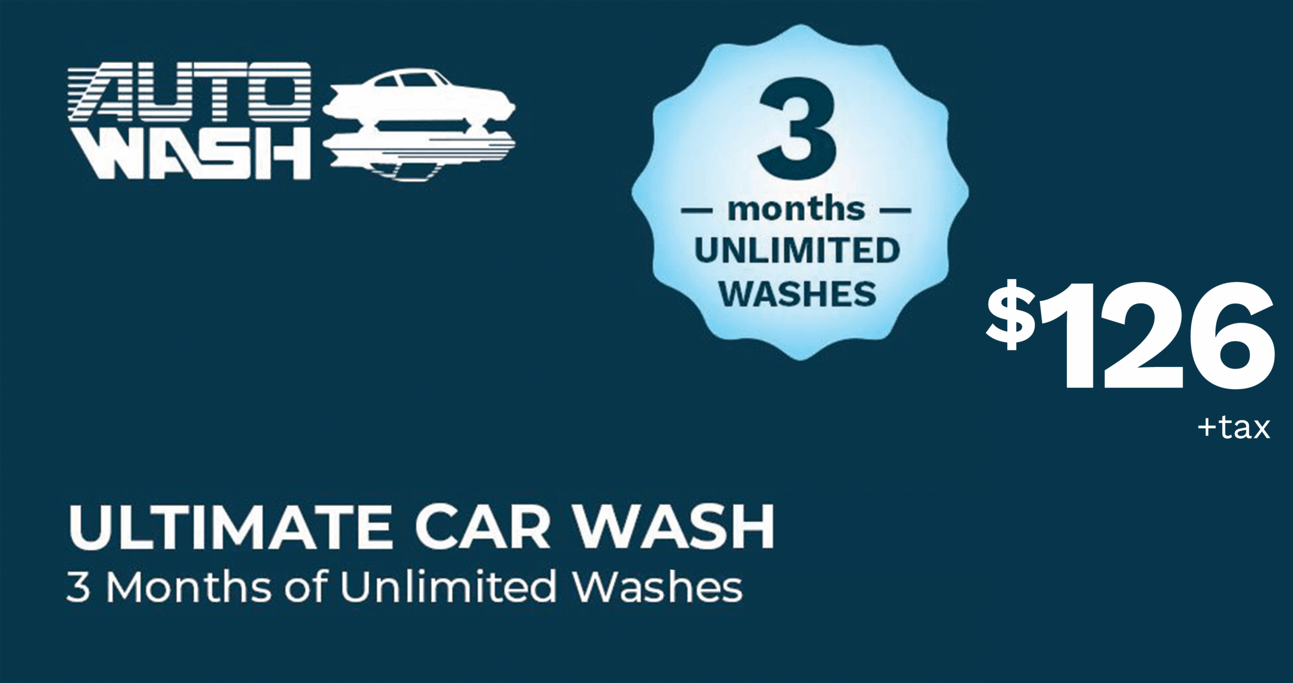 A clean car is the best feeling and an even better gift to give! This Unlimited “Pre-Paid” Wash Plan is good for 3 months from the date of redemption. To redeem, please take the email receipt to any Auto Wash car wash location and see our team to enroll and get your RFID sticker. Pre-Paid Unlimited Plans can be used at any Auto Wash location. The price in pink includes sales tax.